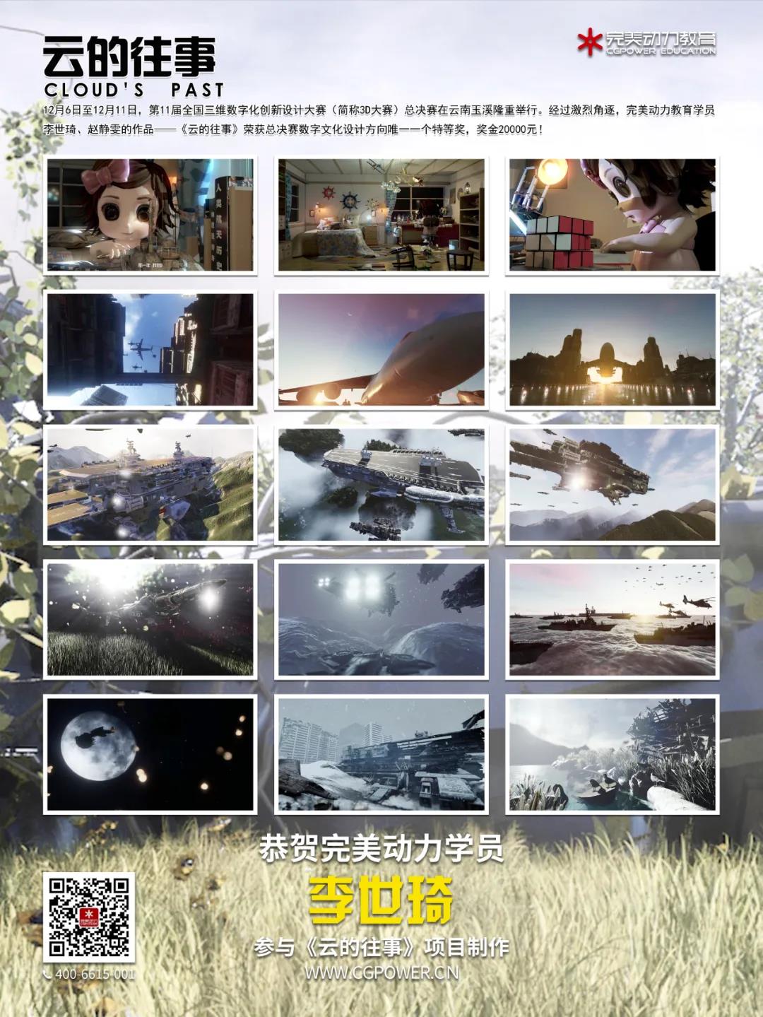 目前為止,我國已成為全球第二大電影市場,其銀幕的數(shù)量與觀影人次均占據(jù)世界的首位。因此可見,我國影視行業(yè)仍擁有很大的提升空間及發(fā)展?jié)摿Α?/p> 據(jù)了解,完美動力教育是CG培訓行業(yè)高端品牌,培養(yǎng)出諸多行業(yè)制作精英。其中電視劇《陳情令》、《扶搖》、《諜戰(zhàn)深海之驚蟄》,抖音“老李很慌張”,電視臺CCTV12夕陽紅、最強大腦,電影《大天蓬》、《封神傳奇》、《大約在冬季》,游戲《和平精英》、《夢幻西游》、《QQ飛車》、《上古卷軸》等作品均有完美動力畢業(yè)學員參與制作。最后恭賀完美動力教育學員李世琦、趙靜雯的作品《云的往事》榮獲總決賽數(shù)字文化設(shè)計方向唯一一個特等獎!