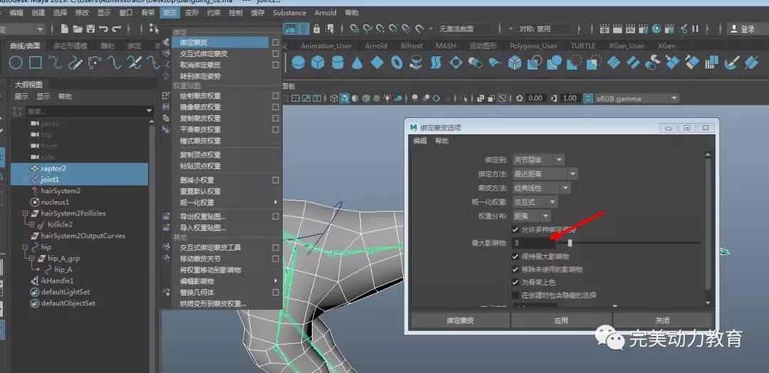 最后就是根骨骼與模型進(jìn)行蒙皮啦