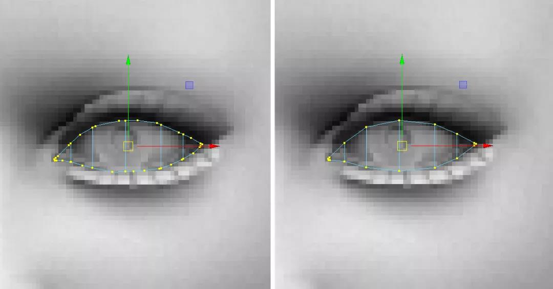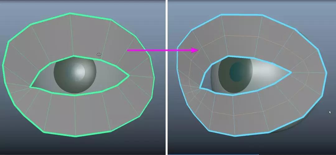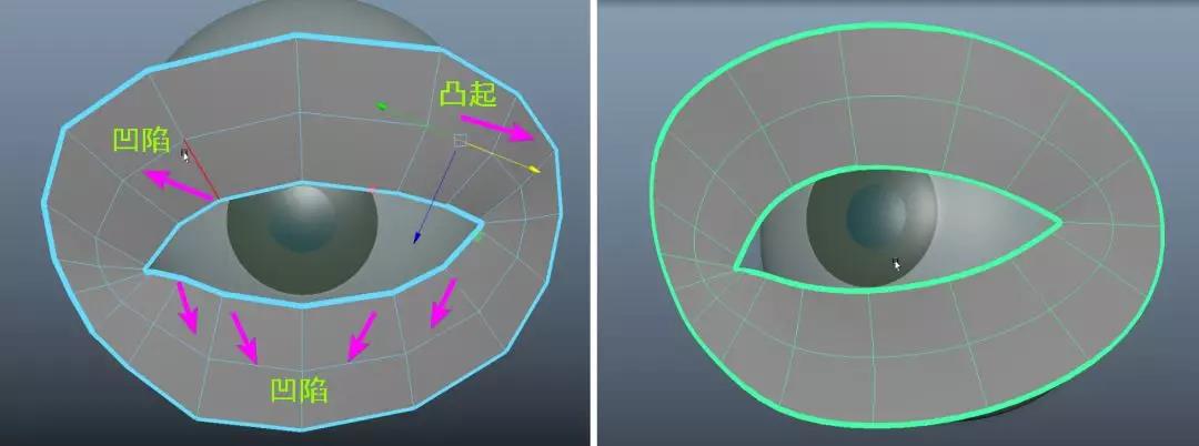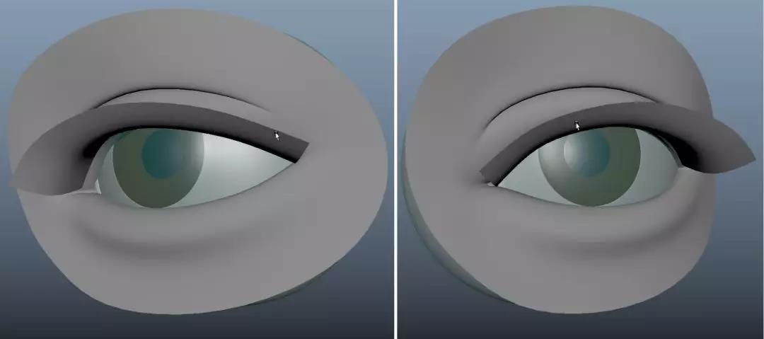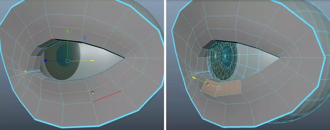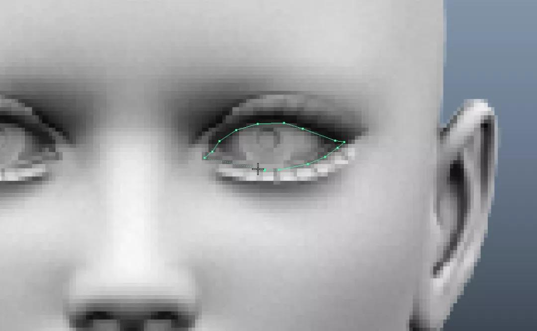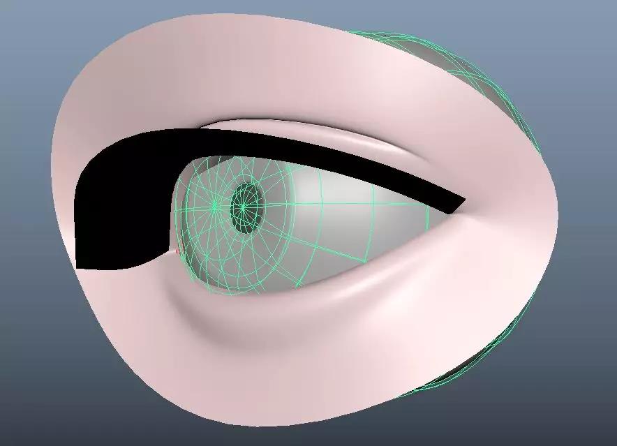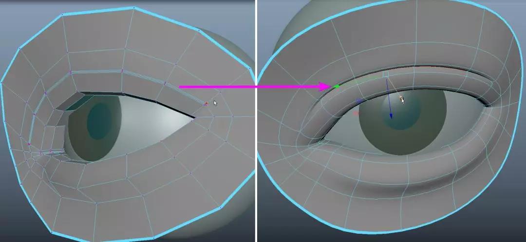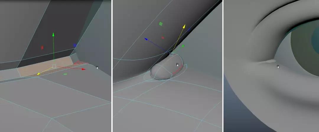 31、將“半月瞼襞”邊緣的邊進(jìn)行擠出邊并稍微放大,使之緊密貼合在外部眼球上:如下圖