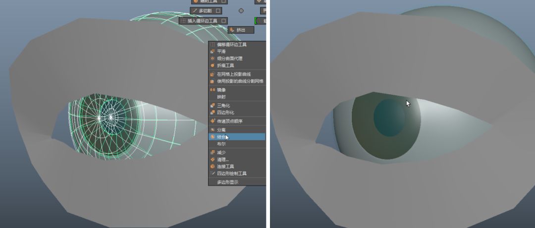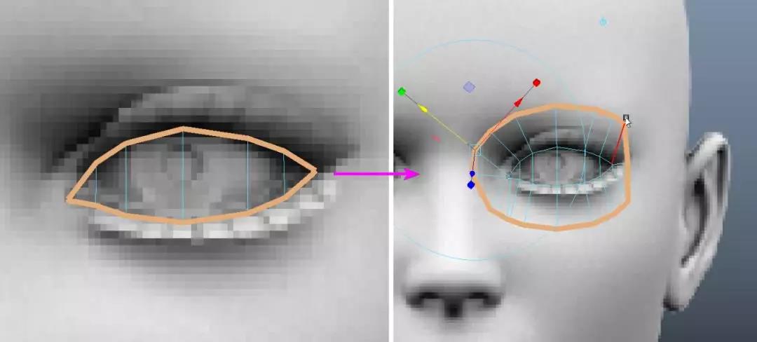 按照眼部環(huán)形布線的要求,把握好外形曲度圓滑,達(dá)到高度寫真的效果。