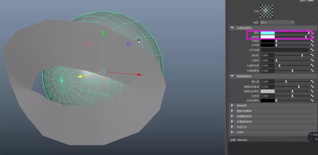 16、為方便觀察,指定一個(gè)淡藍(lán)色材質(zhì)球,調(diào)節(jié)透明度:如下圖