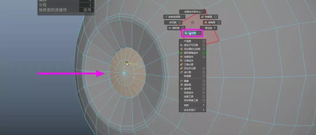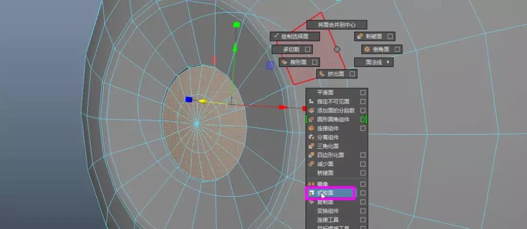 19、選擇“瞳孔”的面進(jìn)行“擠出面”并稍微內(nèi)移:如下圖