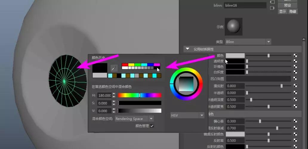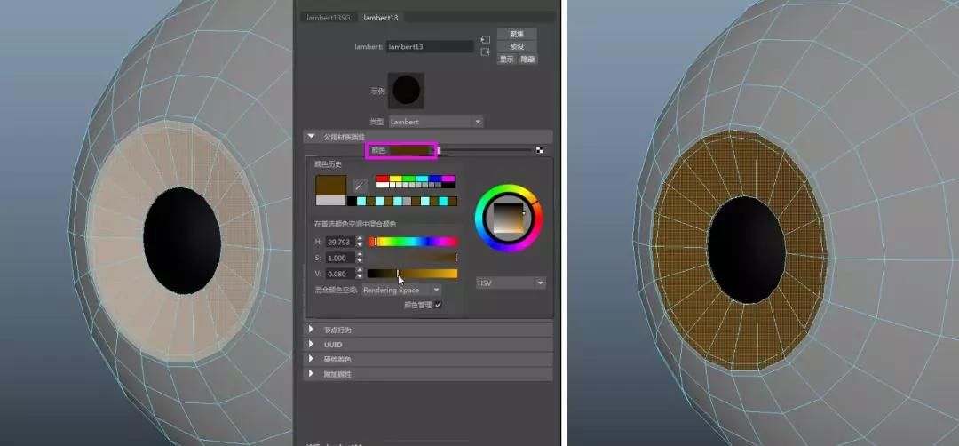 22、選擇“虹膜區(qū)域”的面,右鍵指定一個(gè)黃褐色材質(zhì)球:如下圖