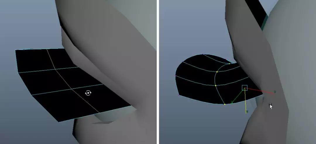 34、將睫毛面片加環(huán)線并調(diào)節(jié)曲度:如下圖