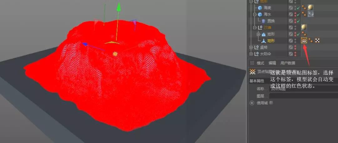 第二步來制作島。首先使用一個地形,調整大小和高度等數(shù)值,放在海水的中間作為海島的樣子,調整好之后,按C鍵把地形轉變?yōu)榭删庉媽ο蟆?br>