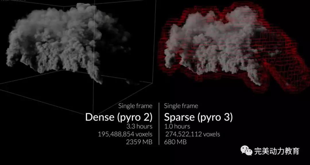 增加了稀疏體積解算,可以極大節(jié)省系統(tǒng)資源——制作大面積煙火,以前都需要分割流體框,以避免單個(gè)流體框浪費(fèi)太多資源。