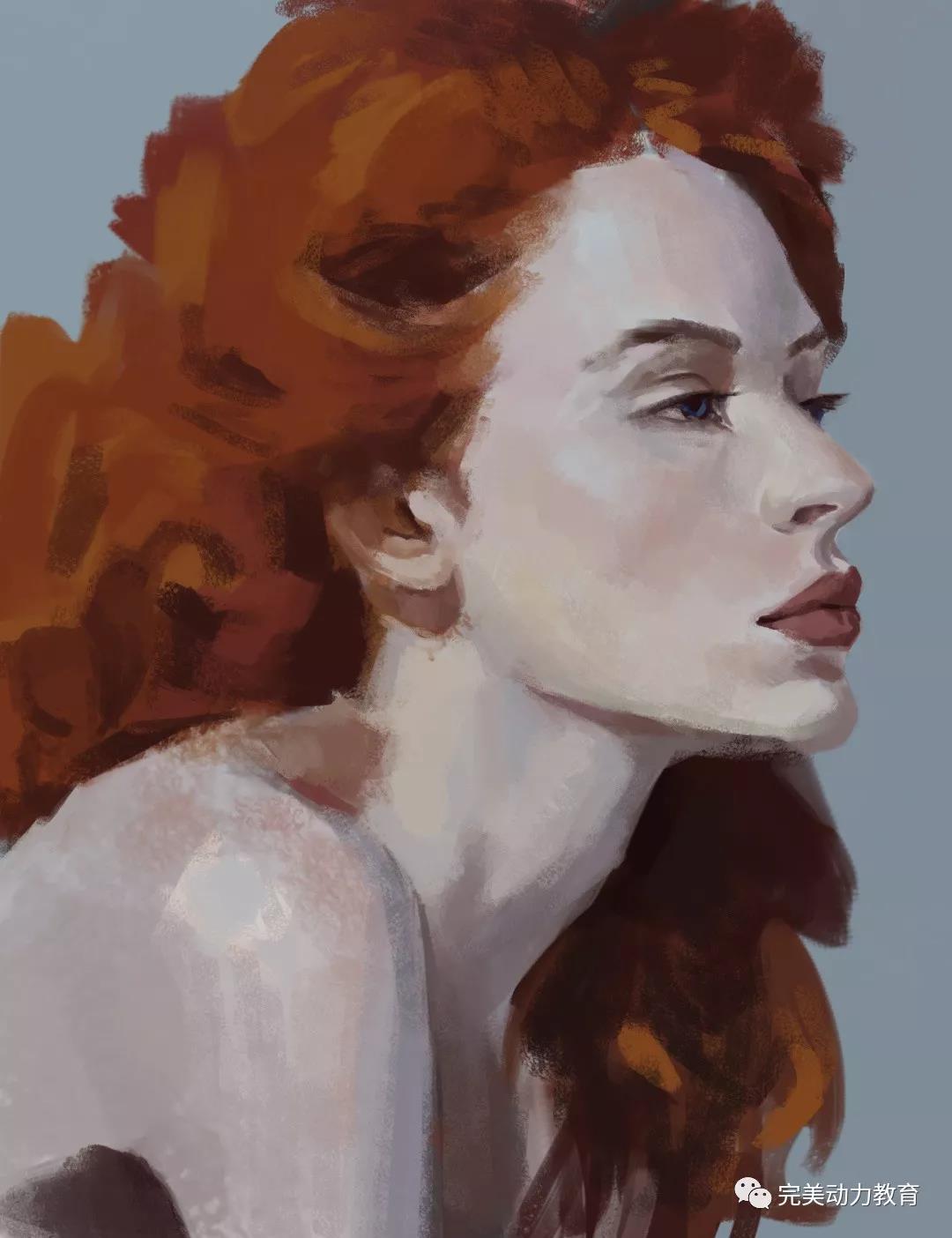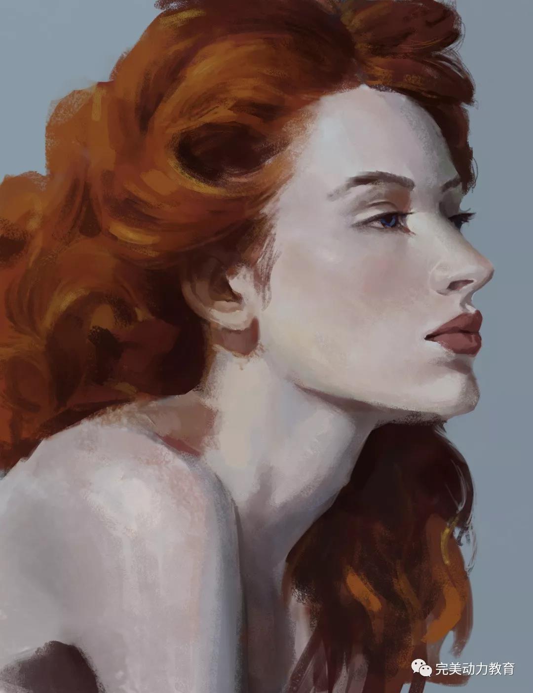 5.花最后的時間來刻畫一點點質(zhì)感,畫面中只有皮膚和毛發(fā)兩種大面積的質(zhì)感。皮膚可能會有一點點顆粒感,但還是以光滑為主。頭發(fā)里加一些排線來體現(xiàn)。這樣基本規(guī)定的速途時間也就結(jié)束了。