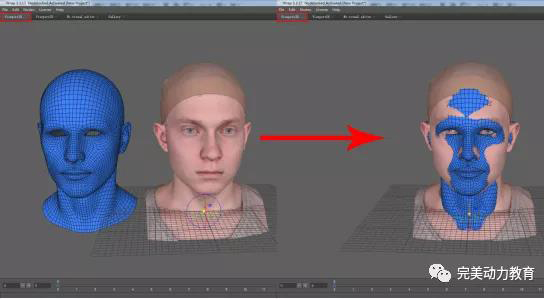 切回3D工作區(qū),將base模型與高模匹配一下,大小基本一致,然后嘴或眼睛什么的基本對上就好,這個時候需要操作模型,Wrap的操作方式和MAYA基本一致。
