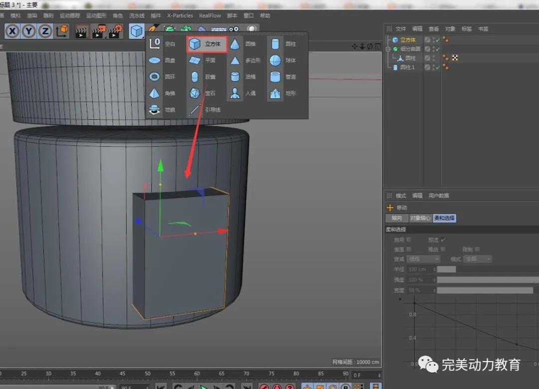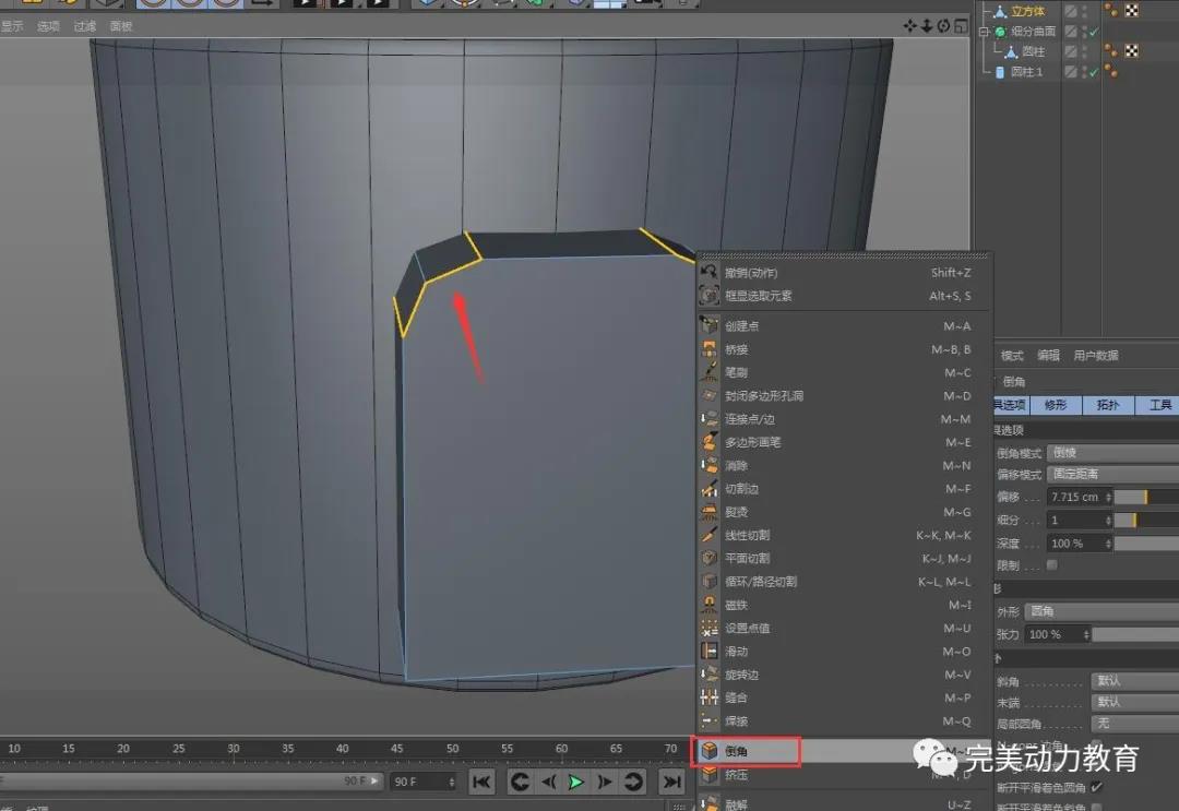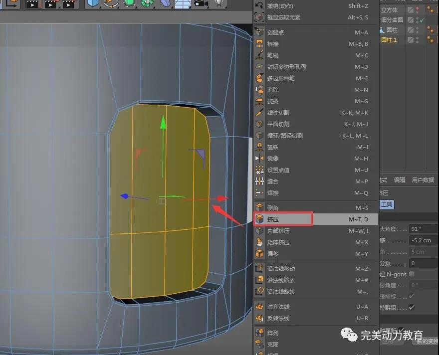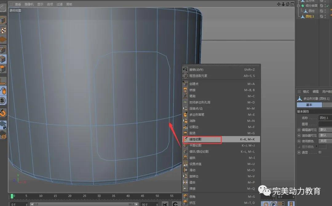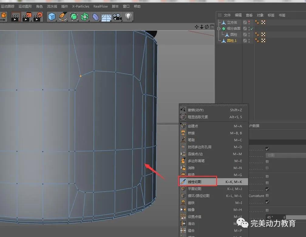 (2)將圓柱轉(zhuǎn)化為可編輯對象,調(diào)整圓柱粗細(xì),右鍵循環(huán)切割加線