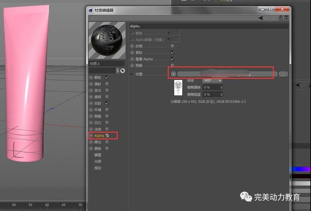 (2)新建一個(gè)材質(zhì)球,顏色改為黑色,Alpha通道添加貼圖。