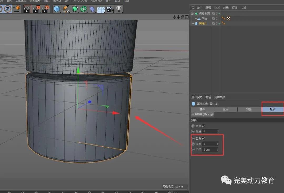 (5)制作瓶蓋部分,給圓柱添加圓角。