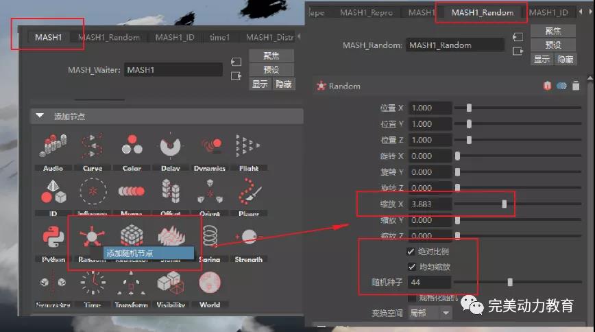 ▲添加隨機(jī)節(jié)點(diǎn)并調(diào)整參數(shù)