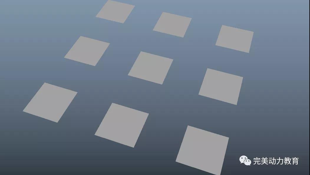 在Maya場景中,創(chuàng)建9個面片(具體數(shù)量自定)。
