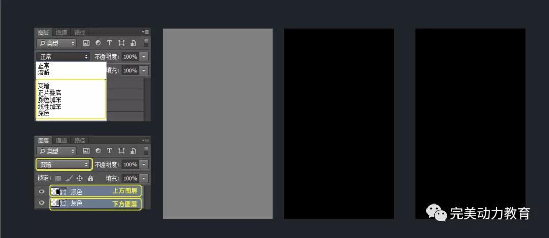 至于去亮組的其它三個選項:顏色加深、線性加深、深色,實際工作中很少用,這里就簡單說一下。