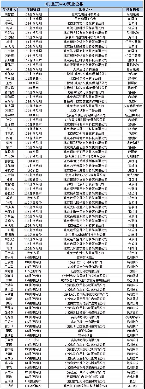 來看一看完美動力北京中心8月份就業(yè)喜報