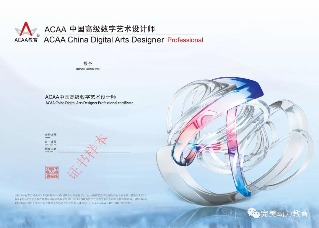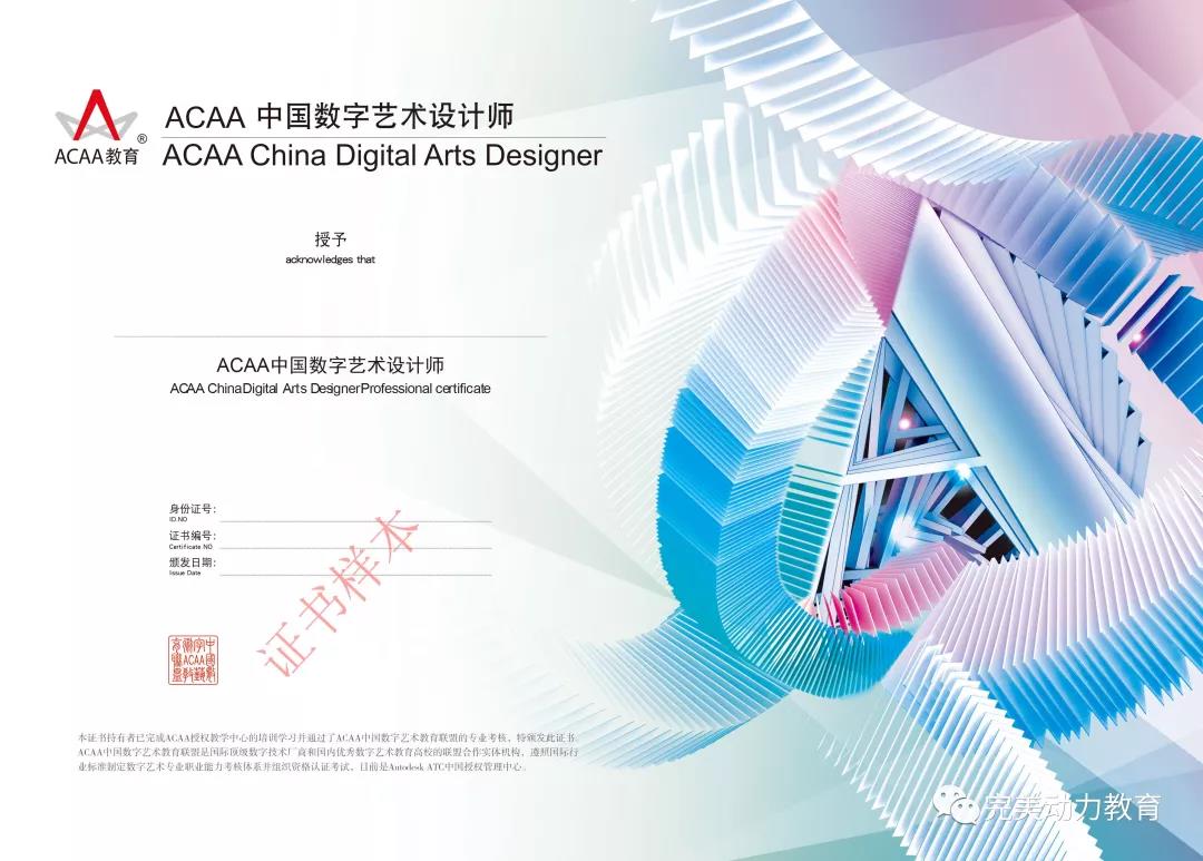 ACAA中國數(shù)字藝術(shù)設(shè)計師 證書樣本