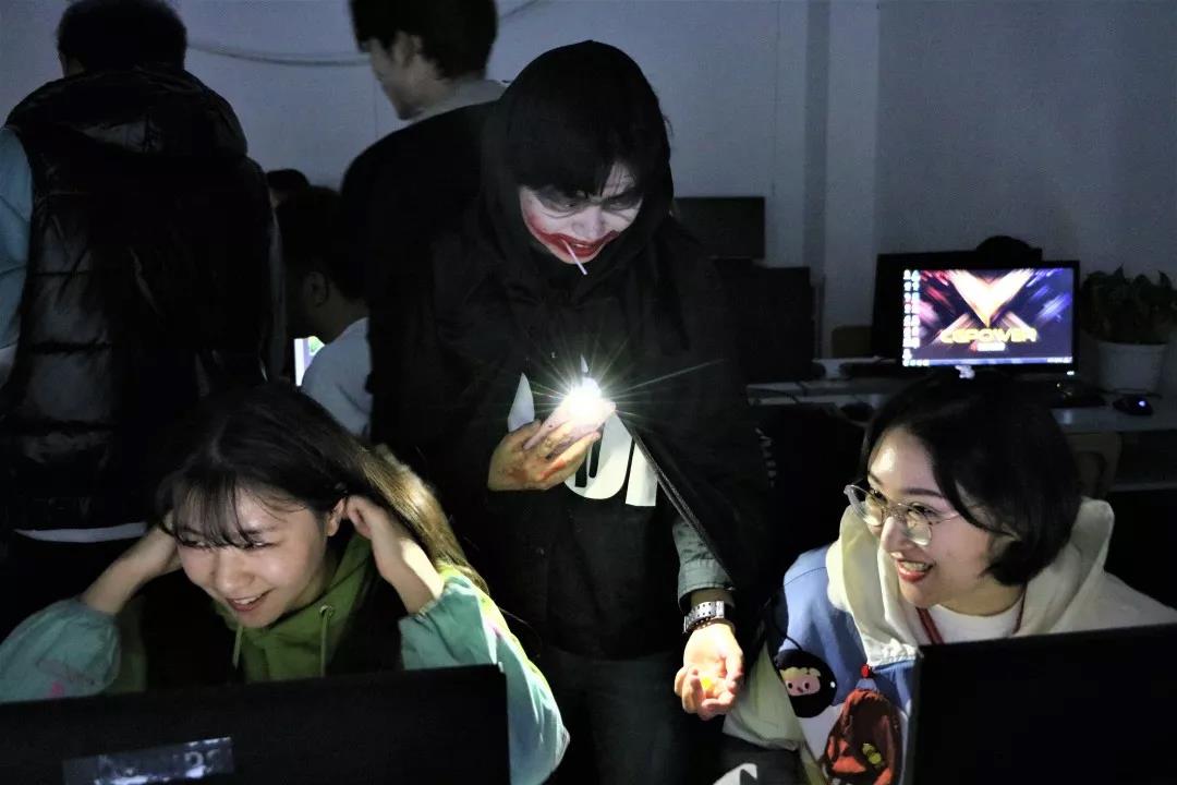 活動(dòng)現(xiàn)場(chǎng)氣氛熱烈,高潮不斷,老師和同學(xué)們都被新鮮刺激的活動(dòng)感染,整棟教學(xué)樓不時(shí)回蕩著驚呼聲,現(xiàn)場(chǎng)高潮不斷。打扮陰森的“小鬼”們或調(diào)皮或賣萌或恐嚇的討要糖果,真為同學(xué)們的小心臟捏了一把汗...