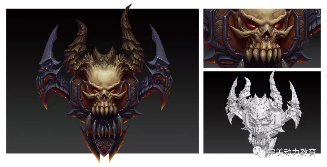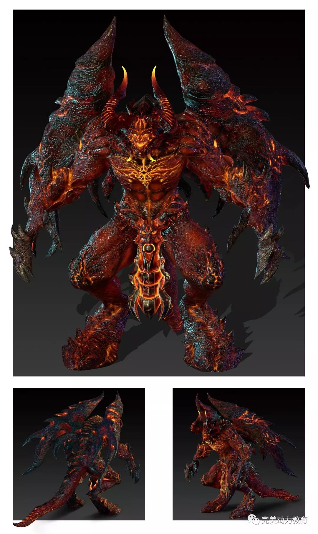 徐飛:我的作業(yè)原型是一個怪物,看到原畫時就覺得它特別的威猛;但是制作的過程也發(fā)生了很多問題,第一就是怪物的大型調(diào)的不太對,我多方嘗試還是不太滿意,最后也是決定尋求老師的幫助。陳老師一語點醒夢中人,她告訴我說:先從模型的低層級開始雕起,然后再一步步的逐步升級,先把大型找對,再去雕模型的細節(jié)。經(jīng)過她的指導(dǎo),我就特別順利的把怪給雕出來了。