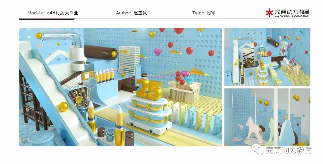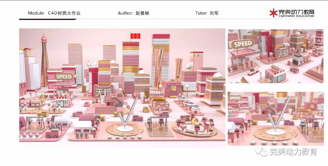 學員作品評價:這個作品,作者模仿天貓海報的一個場景,整體工程量非常大,難度系數較高。
