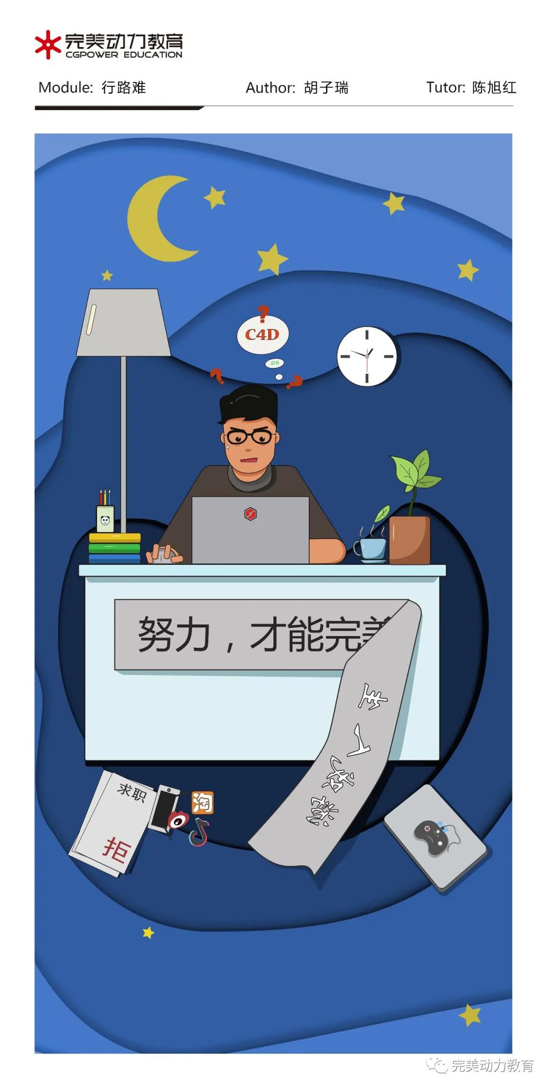 采訪結(jié)束后,胡子瑞同學(xué)非常感謝完美動(dòng)力這個(gè)學(xué)習(xí)平臺(tái),不僅提升自己的技能,還打開(kāi)了自己的視野。所以,他希望完美動(dòng)力越辦越好,為CG行業(yè)輸送更多人才!