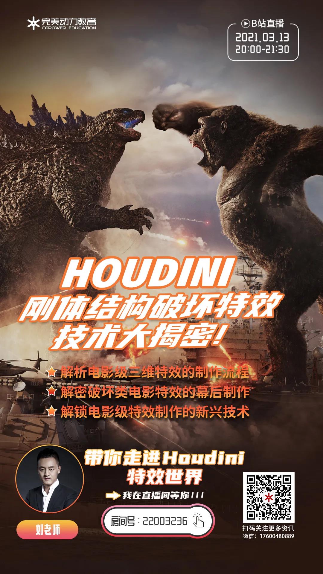 本周六20:00完美動力Houdini特效高級講師劉老師將在B站直播房間號22003236為大家解密破壞類電影特效的幕后制作。