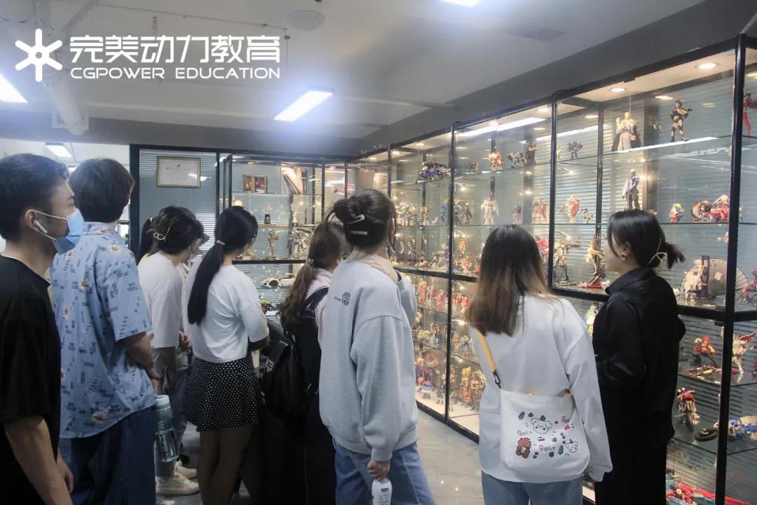 ★我們進入公司后,人事負責人張女士帶領大家進行了參觀,走進大門映入眼簾的就是一整面墻的手辦柜,同學們看到這面墻,個個都目瞪口呆,大家紛紛停駐在柜前,迫不及待的拿出手機留下這難得一見的畫面,畢竟一整面墻的手辦誰不想擁有呢?